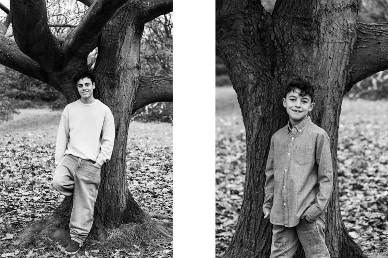 The tall trees created a striking background for individual portraits of the boys. Meanwhile, their adventurous side came out as they climbed and played. At the same time, their sister had fun on a rope swing, spinning and laughing.