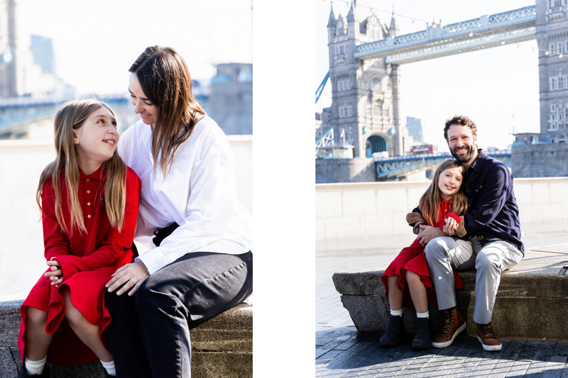 I had such a great time on this family photoshoot at Tower Bridge. The lovely family — mum, dad, and daughter — were on holiday in London and wanted to remember this special time with some professional family portraits. Photographing families on vacation is always special. Everyone is relaxed, happy and excited to be exploring a new city. This joy truly shines through in every image from this session.