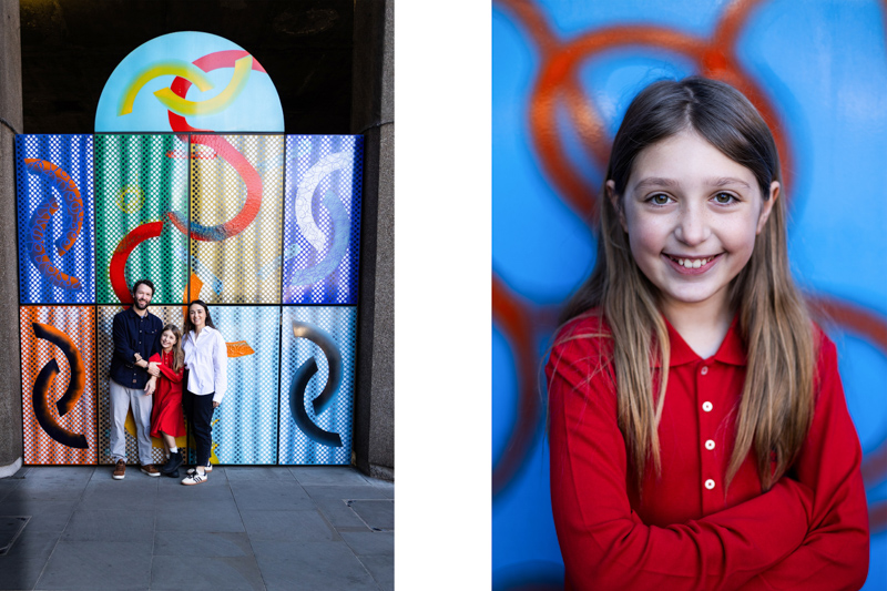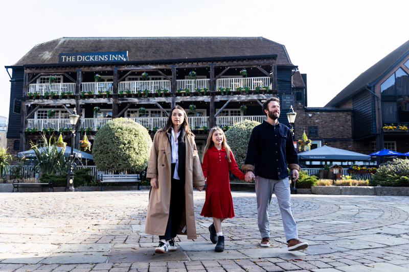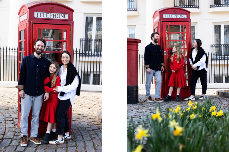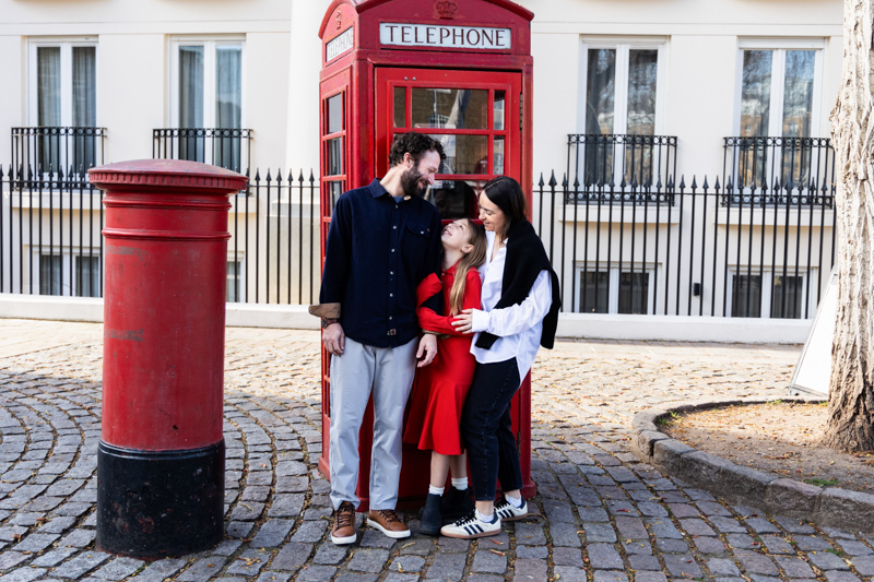 We began at the historic Tower of London, creating classic London family portraits with the Tower in the background and the iconic Tower Bridge close by. The bridge’s spectacular architecture provided the perfect backdrop to the photos. And the family’s laughter and connection shone through in every shot. Afterwards, we wandered around St Katharine Docks, a hidden London gem. The colourful walls and a bright red telephone box worked beautifully in their natural family portraits. Every corner of this area offers something unique for a London Family Photographer.