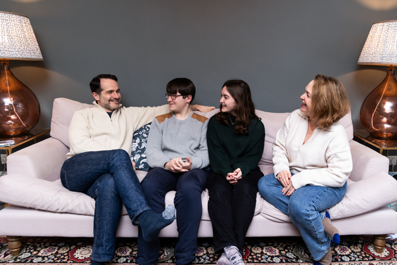 It was lovely to photograph this family in their home in the new year. The session began with some fun family portraits of them all together. We captured everyone smiling, laughing, and simply enjoying time in their living room. As a London family photographer, I always love sessions that feel genuine and comfortable, where families can just be themselves. The parents chatted with their children, while I photographed their joyful expressions, producing the kind of natural family portraits that really show connection.