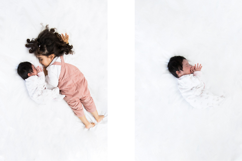 During this session, the whole family came together to celebrate the newest arrival. Mum and Dad spent time cuddling their baby while we captured some beautiful, gentle portraits. Their older daughter was wonderfully curious about her new sibling and loved being part of the photographs. These moments between siblings often become some of the most treasured images from a session.