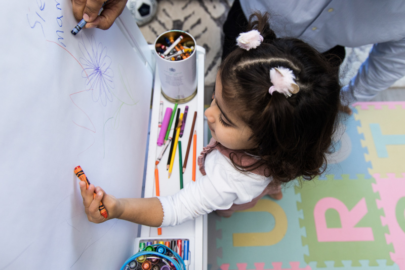 Home sessions are perfect for creating natural London baby portraits. Rather than using posed studio setups, I focus on relaxed moments that unfold naturally. The living room provided a cosy setting for family photographs, while the playroom was a lovely space for images of the older daughter reading and colouring with her parents.