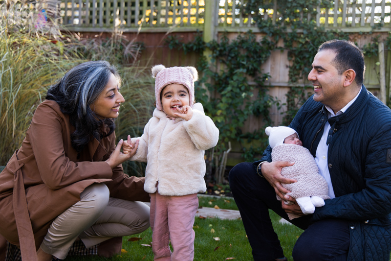 Even in the middle of winter, stepping outside briefly can add variety to a gallery of images. The garden provided a beautiful backdrop for a few relaxed photographs of the family together. Wrapped up warmly, everyone gathered for some natural portraits that felt joyful and relaxed.