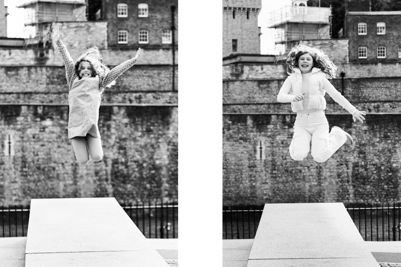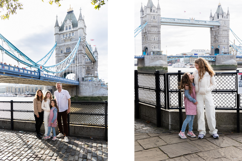 We started near Tower Bridge, one of the most recognisable landmarks in the city. The setting gave us that classic London feel straight away. At first, we captured some relaxed family portraits together. Then, we let the girls have a bit of fun, which brought out their personalities beautifully.