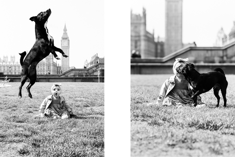 The standout image for me was the hilarious moment when the family dog leapt into the air, right over the baby’s head! It’s one of those natural family portraits that perfectly captures the fun that happens during a session. Behind the scenes, dad was just out of frame holding up a treat to encourage the dog to jump. And the baby’s look of surprise made the photo truly unforgettable. As a London family photographer, I always love moments like these where real personality shines through.
